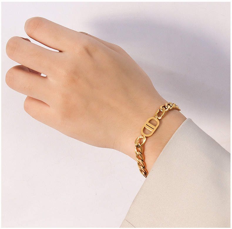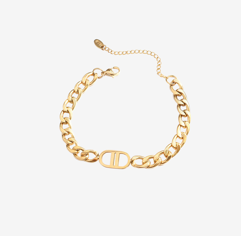 Double D Letter Curb Chain Bracelet