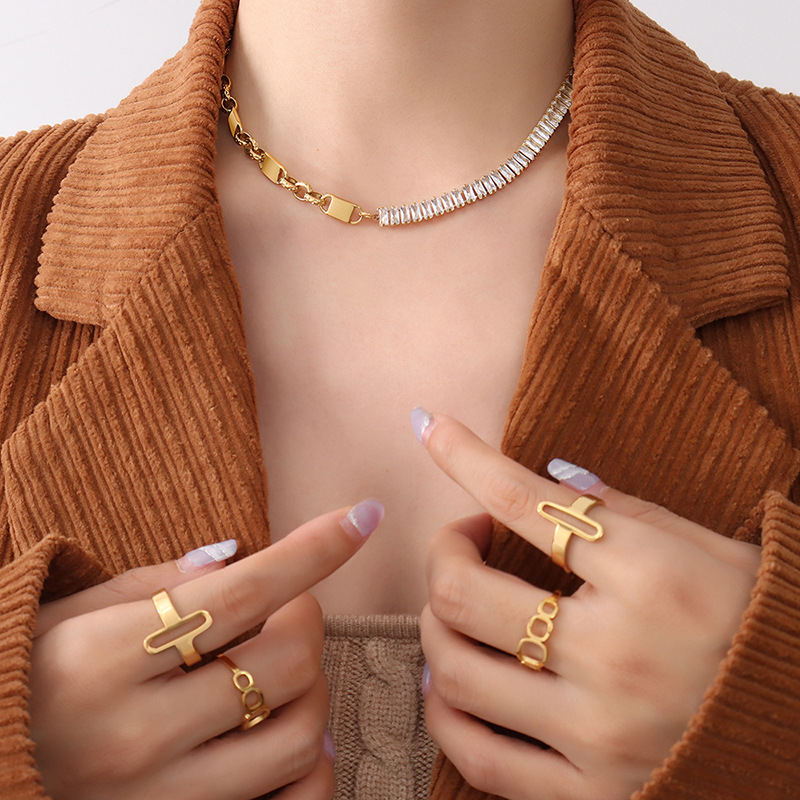 Blade Chain Splicing Diamonds Choker & Bracelet Set