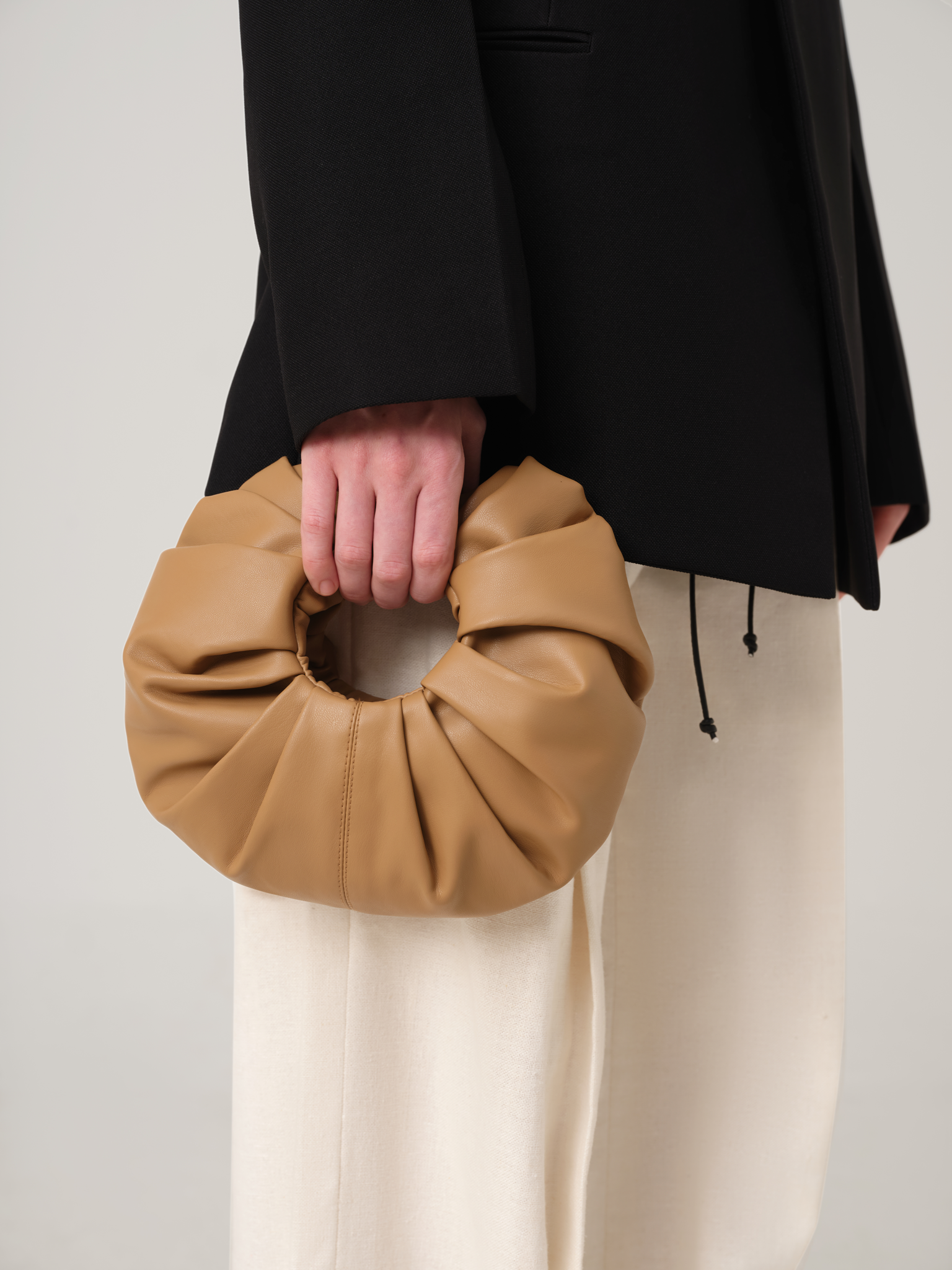VEGAN LEATHER DRUM BAG IN BLACK