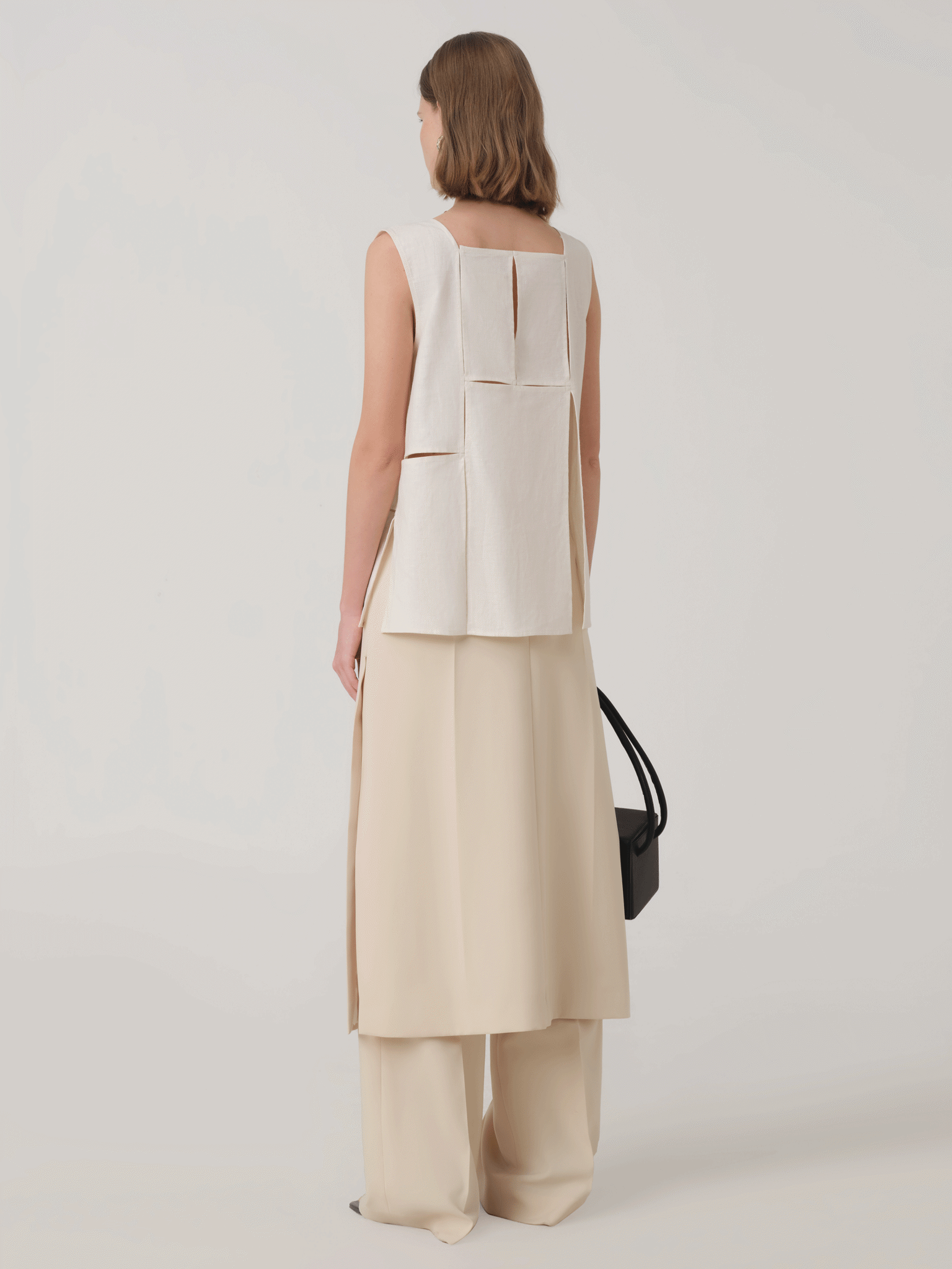 SLEEVELESS CUT-OUT LINEN BLOUSE