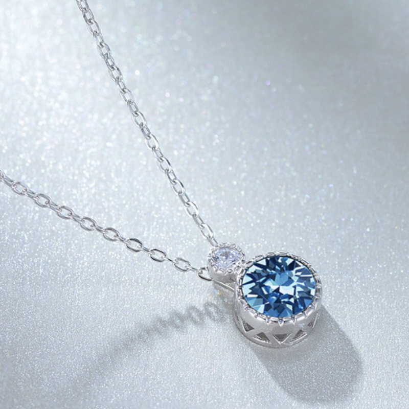 "My heart is an ocean. I'm captivating, yet unpredictable." Minimalistic style combined with coloful shining gemstones, our necklace will be the perfect matchup of your smile. Match it up with our Heart of the Ocean earings & bracelet.
