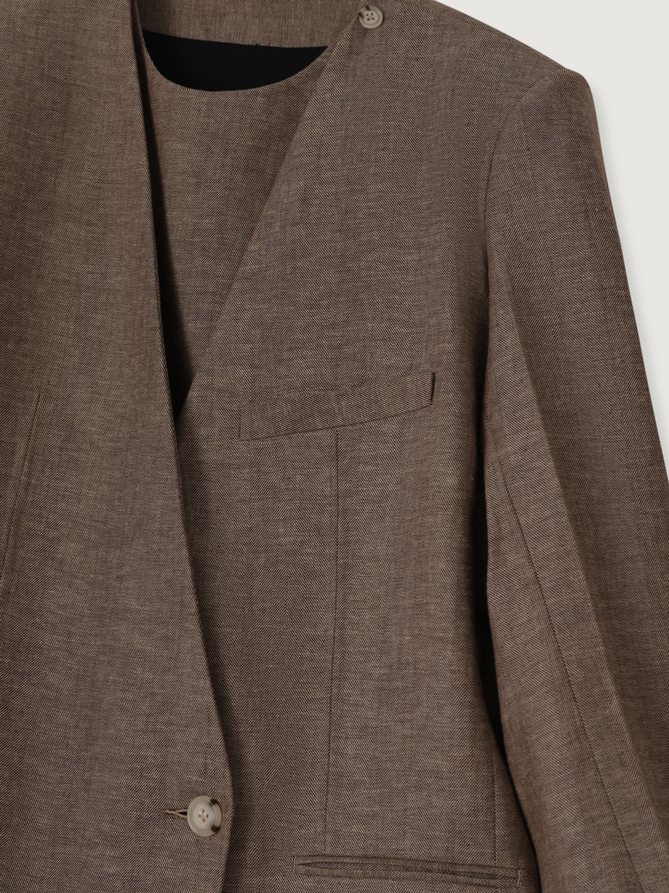 会员价商品-OVERSIZED SINGLE-BREASTED LINEN BLAZER IN MELANGE BROWN
