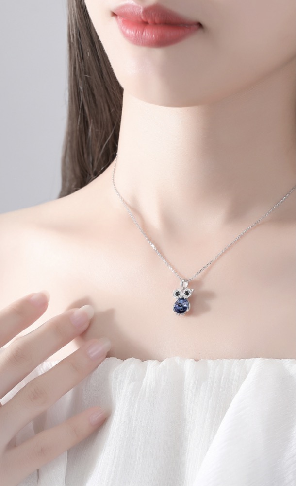 "Cute like an owl? No, I just like to observe." Combination of black and blue gemstones, inspired by the look of owls, makes you look intelligent and elegant.